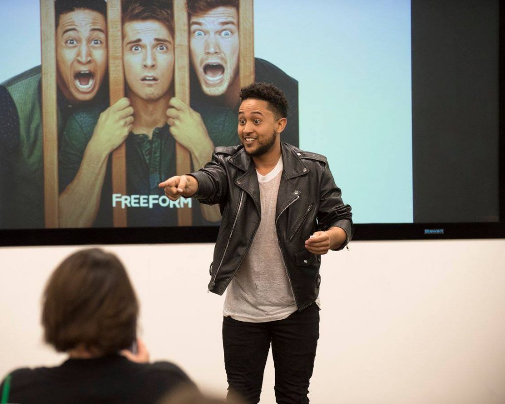 Chelsea: I don’t know if you saw the episode where Tahj is trying to run away from Melissa and on take 3, they’re coming back from the airport and she picks up a full-sized suitcase and just hits at Tahj. So, it’s stuff like that happens on the third take.