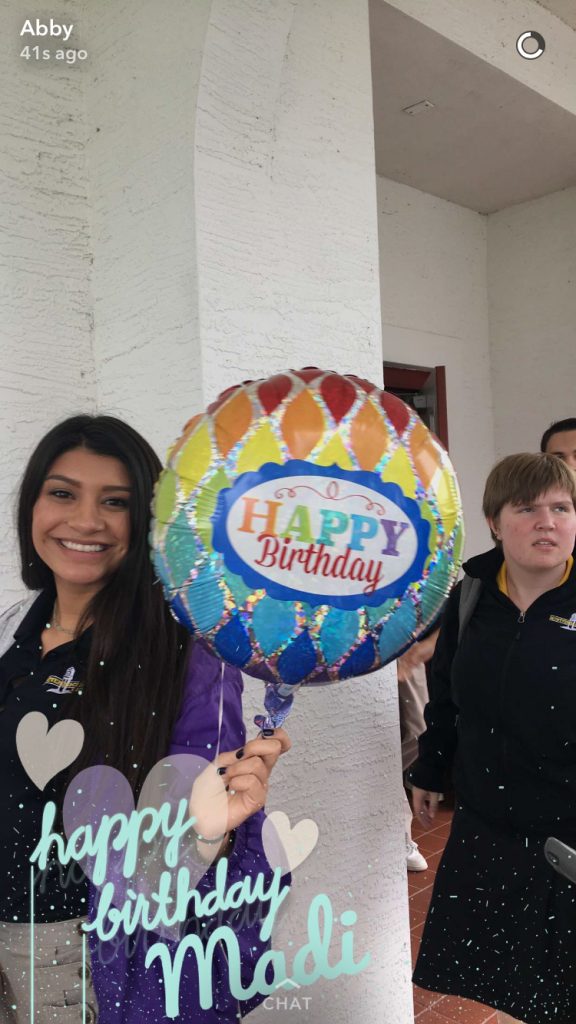 As I mentioned before, chances are if you have a teen, they are on Snapchat, and did I get the teen approval on this gift. For her actual birthday, I made a geofilter for the kids to use for the day at school.