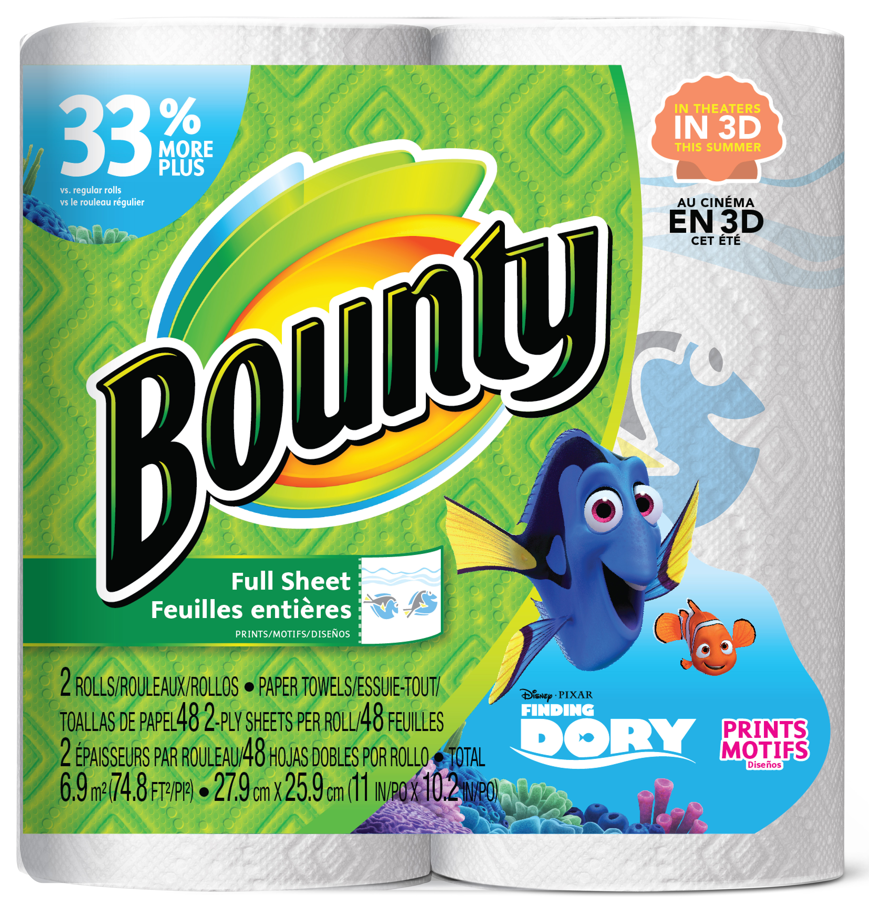 The new Bounty prints featuring Disney•Pixar’s Finding Dory are available at retailers nationwide. All pricing is at the sole discretion of the retailer.
