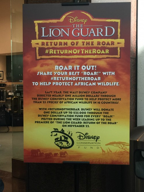 Be part of the #ReturnOfTheRoar campaign where Disney will donate one dollar to $25,000 through the Disney Conservation Fund for every “ROAR” posted until November 22nd, the day of the premiere of The Lion Guard: Return of the Roar.