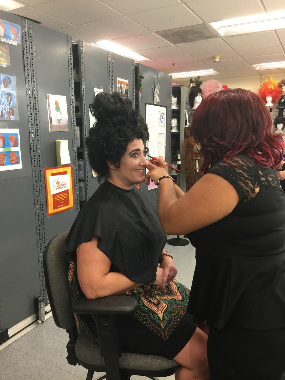 I arrived at a special warehouse building at Walt Disney World that there are costumes galore. It was a dream for anyone that loves to play dress up whether for Halloween or all the time. Thousands of costumes from princess to walking bushes, I was mesmerized by the years of memories that hung in a large room. No photos were allowed, understandably so, but I have to say it set the mood for my Hocus Pocus transformation.