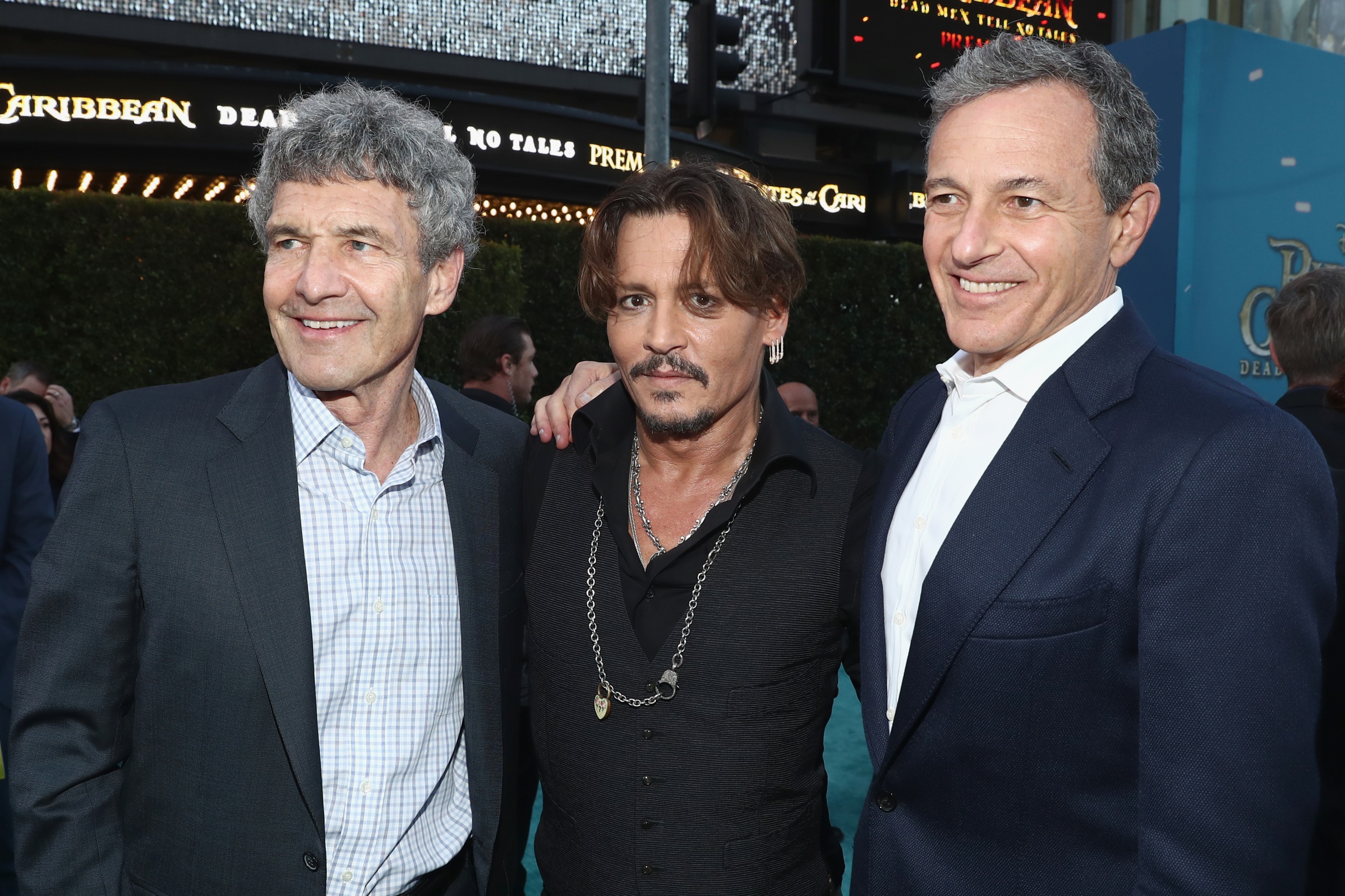 There were also the filmmakers including Jerry Bruckheimer, as well as directors Joachim Rønning and Espen Sandberg. Also pictured is Johnny Depp with Alan Horn and Bob Iger from Disney.