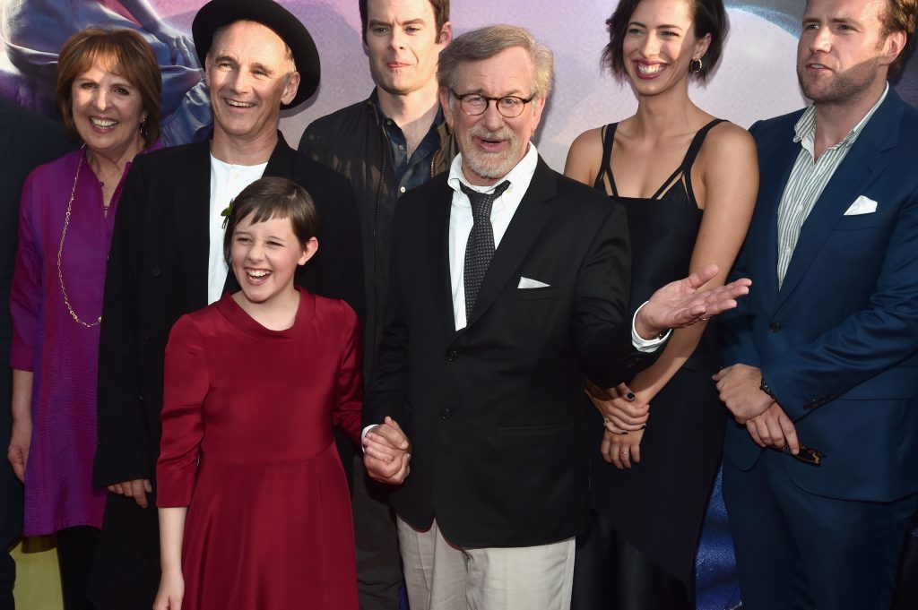 (Photo by Jesse Grant/Getty Images for Disney) (L-R) Director Steven Spielberg, actors Ruby Barnhill and Mark Rylance